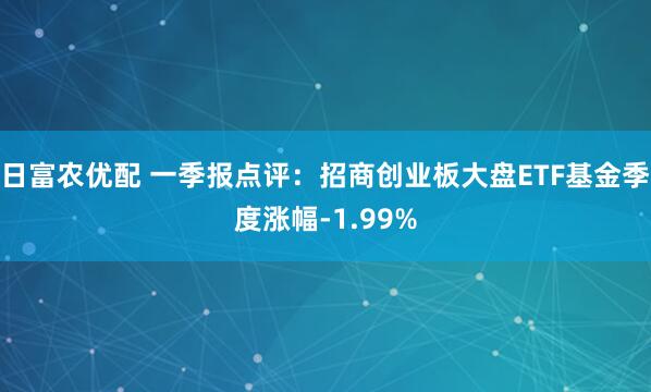 本站消息日富农优配,日前招商创业板大盘ETF基金公布一季报,2025年一季度最新规模1.42亿元,季度净值涨幅为-1.99%。 从业绩表现来看,招商创业板大盘E....