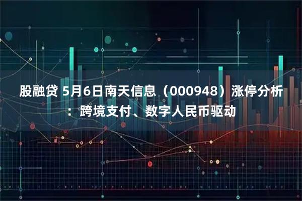 本站消息,南天信息5月6日涨停收盘,收盘价18.56元。该股于10点0分涨停,未打开涨停,截止收盘封单资金为1.11亿元股融贷,占其流通市值1.54%。 今日南....